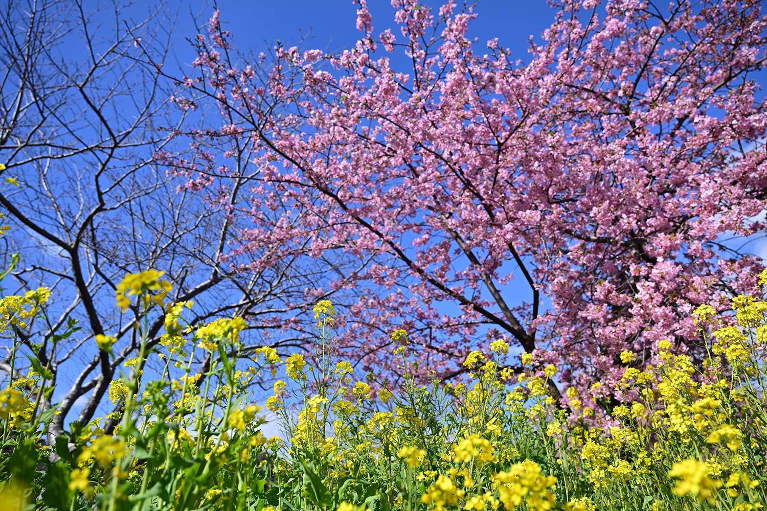早咲きで有名な河津桜を見に行きました。濃いピンク色の花が満開になっていました。屋台も出て多くの見物客で賑わっていました。
