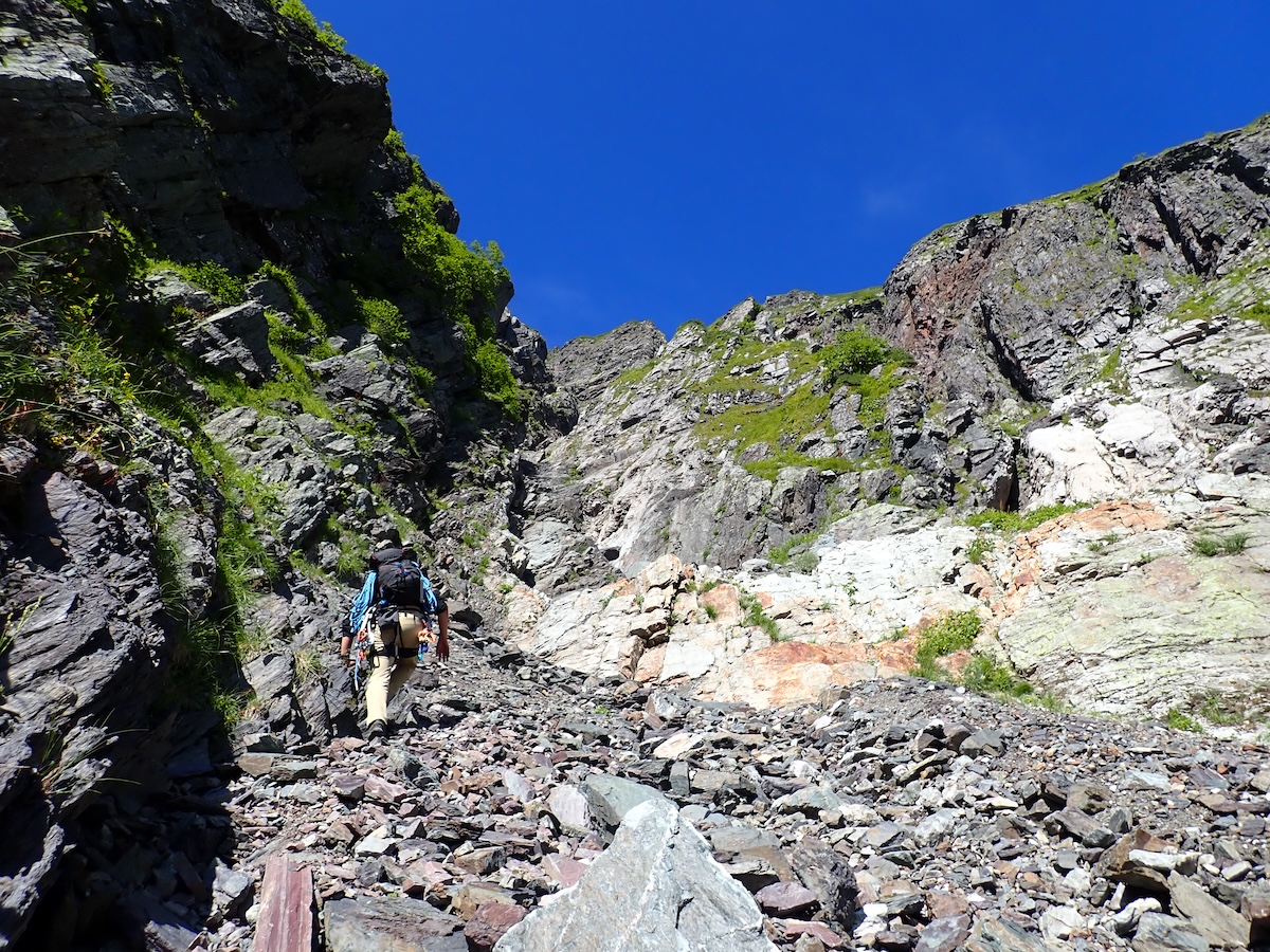 2025年度の「大人の山岳部・夏山合宿」は,日本第2の高峰である北岳(3,193m)が擁するバットレス登攀でした。「バットレス」は壁面を支える「控壁」を意味する建築用語ですが,そのネーミングの通り,第1から第5までの直線的な岩稜が大樺沢から立ち上がり,北岳の頂きを支えています。「北岳バットレス」はこの岩場の特徴を端的に表し語感も良く,実にカッコ良いネーミングです。特に第4尾根主稜は北岳バットレスのほぼ中央に位置し,大樺沢から頂上にかけて真っ直ぐに突き上げる,豪快かつ爽快なルートです。標高差600mの長大な岩稜は,まさに北岳バットレスのメインストリートです。クライミング技術的にはそれほど難しくないことからも,常に多くのアルパインクライマーを迎え入れています。